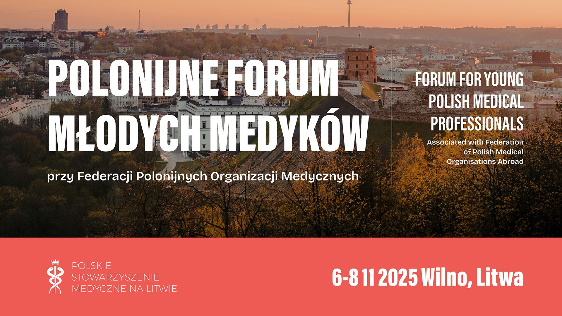 Z ogromną przyjemnością chcielibyśmy zaprosić Państwa na Polonijne Forum Młodych Medyków, które odbędzie się w dniach 5-8 listopada 2025 roku w Wilnie – miejscu, gdzie tradycja spotyka się z nowoczesnością, a wspólne wartości tworzą fundamenty przyszłości.